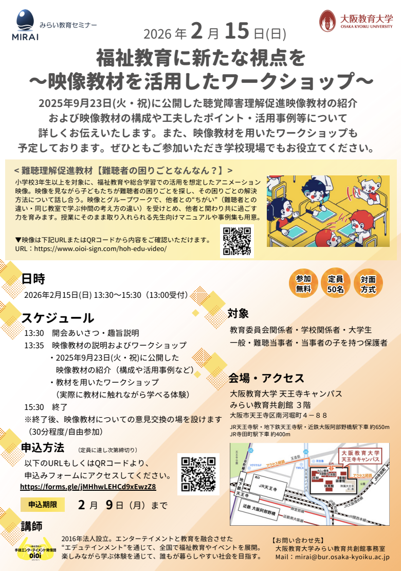 | 場所 | 大阪教育大学 天王寺キャンパス みらい教育共創館3階 |