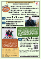 | 詳細 | PDF ※保育(生後6か月から就学前児・先着5人)・手話通訳・要約筆記・補聴システム・点訳資料あり。 いずれも無料。ご希望の方は、2月27日(金)までにお申込ください。 |