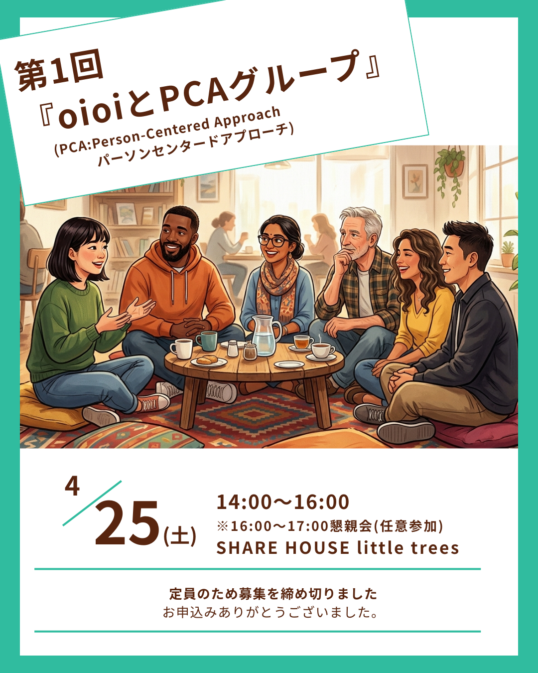 【募集終了】第1回『oioiとPCA(Person-Centered Approach/パーソンセンタードアプローチ)グループ』