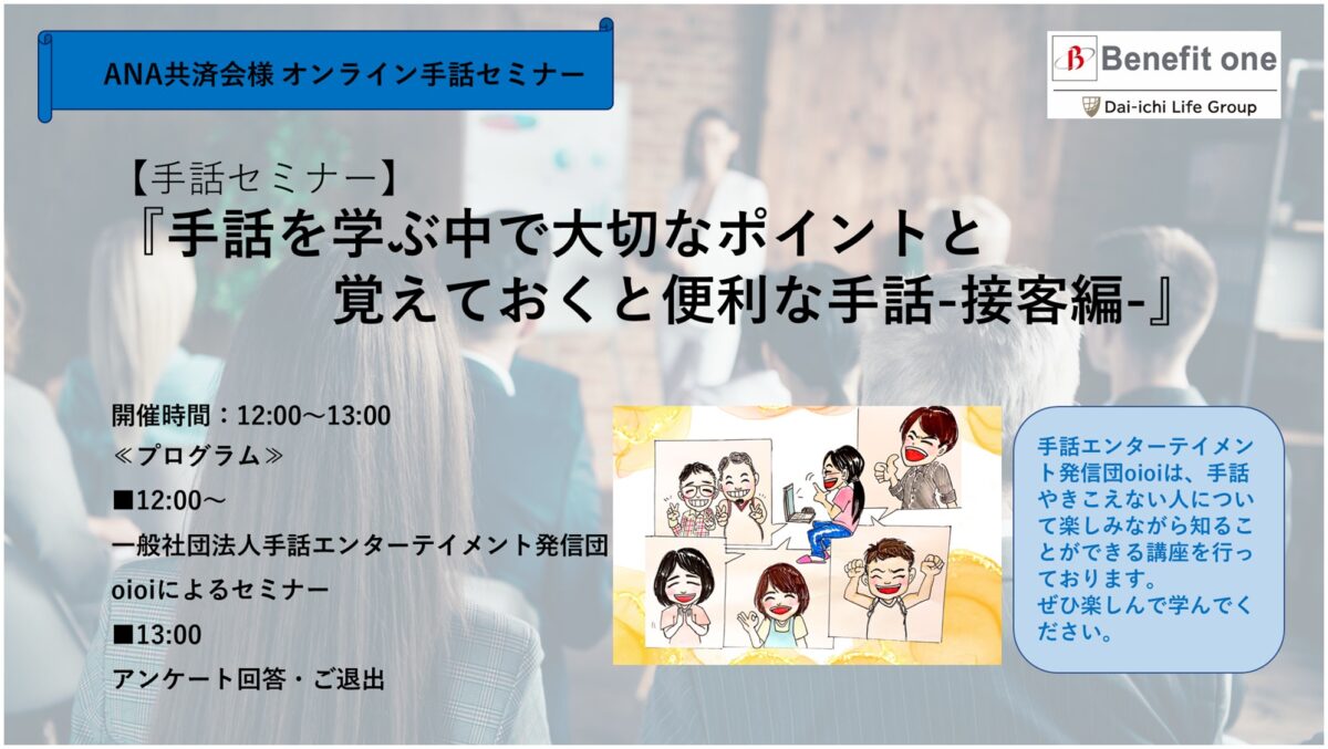 | 2025/10/22 | ANAホールディングス株式会社 手話セミナー@オンライン![]() |