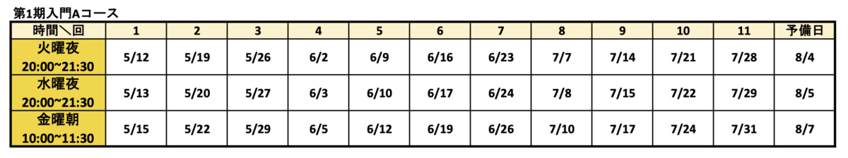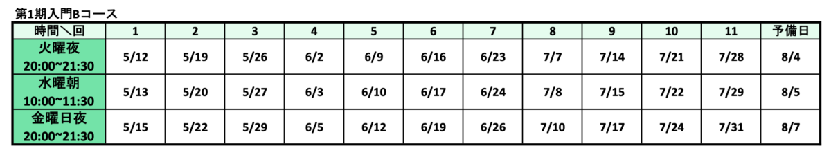 予備日:機材トラブルや講師側の事情などで日程を変更する場合、予備日を使用する場合があります。