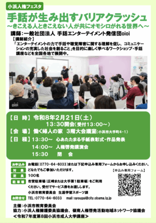 小浜人権フェスタ 手話が生み出すバリアクラッシュ~きこえる人ときこえない人が共にオモシロがれる世界へ~
